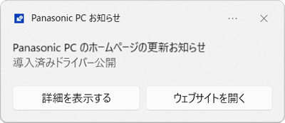 Panasonic PC お知らせの通知がオンに設定されている場合、次のような通知が表示されます。