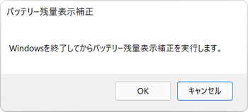 「バッテリー残量表示補正ユーティリティ」画面が表示されます。[OK]を選択します。その後、画面に従って操作してください。