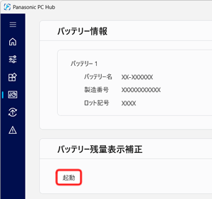 「バッテリー残量表示補正」の[起動]をクリックする。