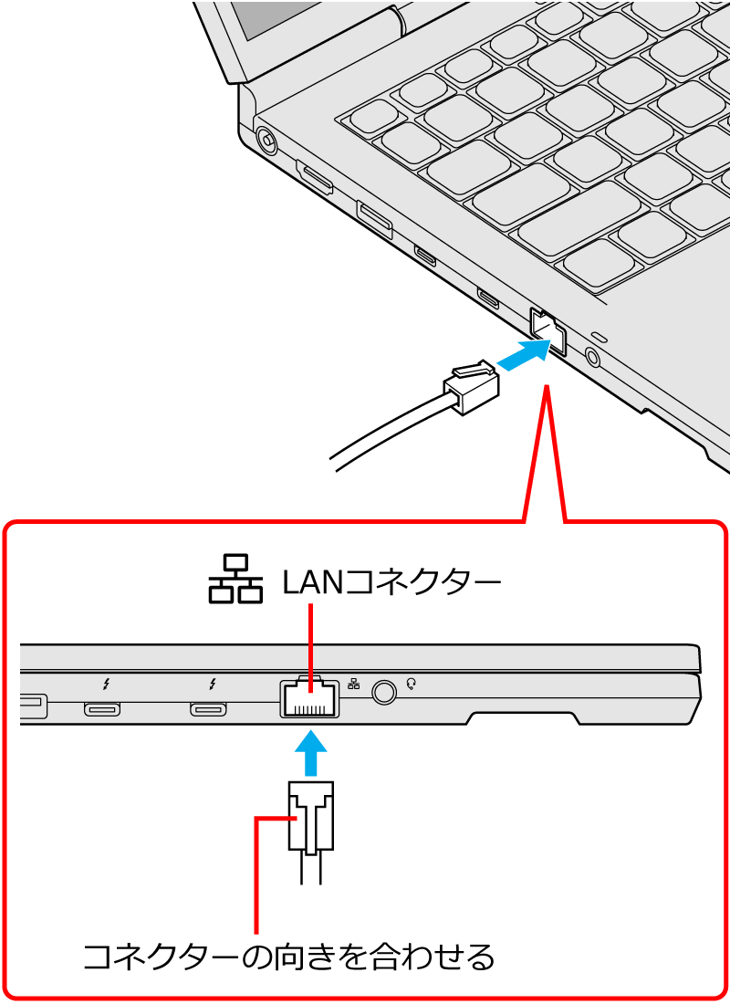 LANケーブルを使って、LANコネクターとネットワークシステム(サーバーやハブなど)を接続します。
