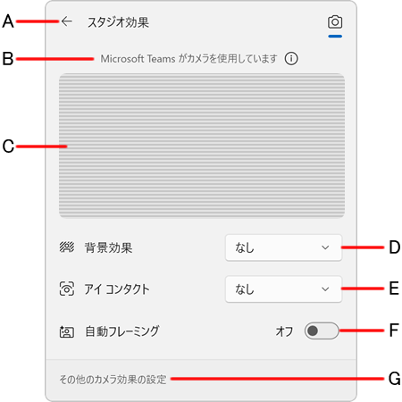 スタジオ効果をオンにすると、カメラを使用するすべてのアプリケーションで機能が有効になります。