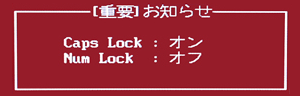 キーボードのキャップスロックの状態が有効の場合は、パスワードの設定時や入力時に次のような「【重要】お知らせ」画面が表示されます。