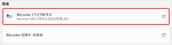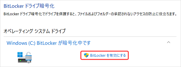 ※画面はBitLockerが無効の場合です。BitLockerが有効の場合は[BitLocker を無効にする]と表示されます。