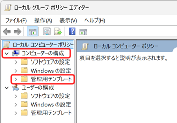 [管理用テンプレート]が表示されていない場合は、[コンピューターの構成]をダブルクリックしてください。