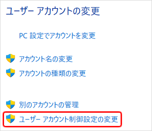 [ユーザーアカウント制御設定の変更]をクリックする。