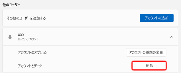 「他のユーザー」の[アカウントの追加]をクリックする。