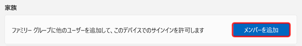 家族メンバーとしてアカウントを追加する場合は、家族メンバーを追加します。