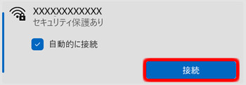 接続する無線LANアクセスポイントのSSIDをクリックして、[接続]をクリックする。