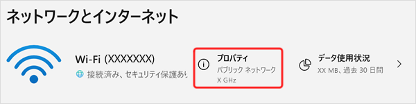 他のパソコンから本機の検出や共有を行う場合は、次の手順でWi-Fiのネットワーク プロファイルを[プライベート ネットワーク (推奨)]にします。[パブリック ネットワーク]にした場合、本機はネットワーク上で検出されません。