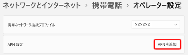 eSIMを利用したワイヤレスWAN通信を行う場合は、APN(Access Point Name:アクセスポイント名)の設定が必要になる場合があります。その場合は、次の手順でAPNを設定してください。