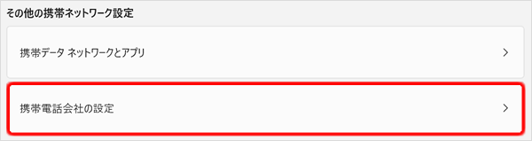 「その他の携帯ネットワーク設定」にある[携帯電話会社の設定]をクリックする。
