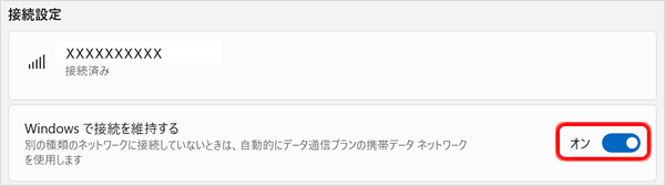 [Windowsで接続を維持する]がオンの場合、ワイヤレスWANが使用できる状態のとき、無線LANによる接続がない場合はワイヤレスWANに自動的に接続します。