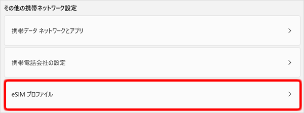 「その他の携帯ネットワーク設定」の[eSIM プロファイル]をクリックする。