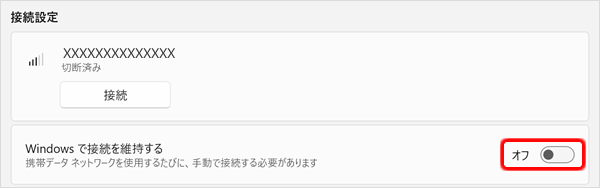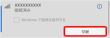 [切断]が表示されていない場合は、「Windows で接続を維持する」のスイッチをクリックしてオフにします。